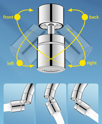 360° Drehbarer Wasserhahnperlator 🌀 - Doppelfunktion Doppelstrom Duschkopf 💦✨